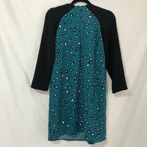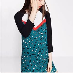 Zara Trafaluc Blue Leopard Print Sheath Dress Womens S Mini Long Sleeve Casual
