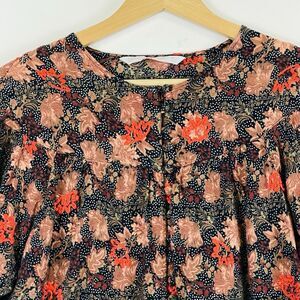 Zara Trafaluc Brown Black Dot Floral Stitch Long Sleeve Blouse Top Womens Small