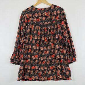 Zara Trafaluc Brown Black Dot Floral Embroidered Long Sleeve Tunic Top. Womens Small.
