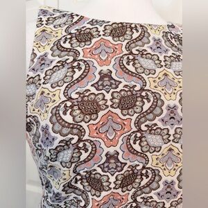 Zara Trafaluc Brown Cream Blue Peach Gold Thread Brocade Shift Dress Size Med.