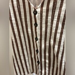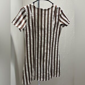 Stylish mini dress with bold stripes. Features a button-up front. Perfect for casual outings.