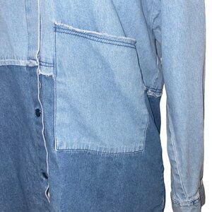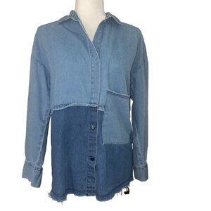 Zara Trafaluc Collection Distressed Two Toned Denim Button Down Shirt Size Medium