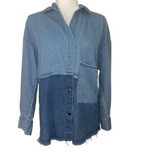 Zara Trafaluc Collection Distressed Two Toned Denim Button Down Shirt Size Mediu