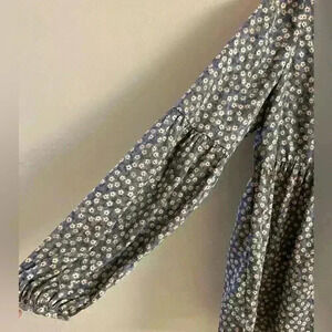 Excellent condition baby doll style blouse from Zara Trafaluc Collection. Grey and yellow floral print with a partial button placket and balloon sleeves.