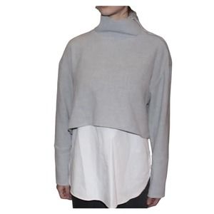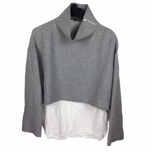turtle neck crop over a white blouse. Side Zipper at the neck. 100% Cotton. Introducing the Zara Trafaluc Collection Gray White Two Piece Top for Women in Size Large. This stylish blouse is perfect for any occasion and is made from a comfortable cotton blend material. The top is designed with a beautiful gray and white color combination that looks stunning on anyone. It has a regular size type and is designed to fit women perfectly. This blouse is from the Zara brand and is part of the Trafaluc Collection. It is categorized under Tops, Women's Clothing, Women, and Clothing, Shoes & Accessories. The two-piece top is a great addition to any wardrobe and can be dressed up or down. The description has been kept free of any mention of the item's condition for your convenience.