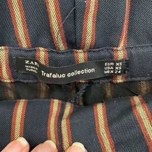 Zara Trafaluc Collection Paper Bag Waist Navy Striped Ankle Pant Women’s Size XS