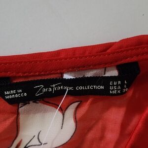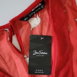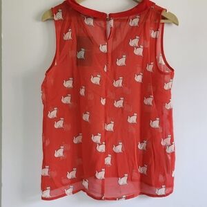 Zara Trafaluc Collection Sheer Red Sleeveless Blouse With Cat Pattern Size Large