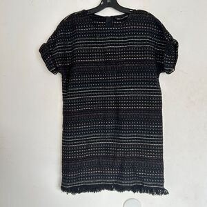 Zara Trafaluc Collection Short Sleeve Knit Stripe Sweater Fringe Shift Mini Dress