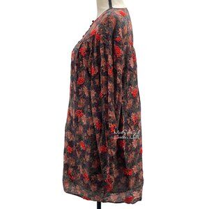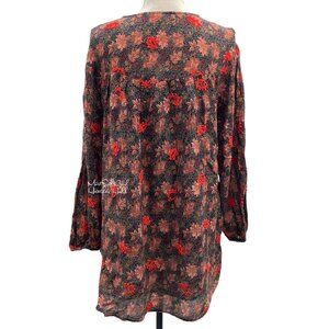Zara Trafaluc Collection Vintage Style Embroidered Floral Button-Down Tunic Top