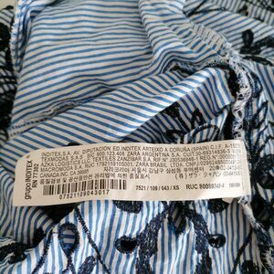 Zara Trafaluc Collection Womens Blue Striped Embroidered Cold Shoulder Top Sz XS