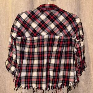 Super cute Zara Trafaluc Collection women's plaid flannel crop top with fringed hem.