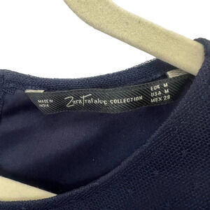 Zara Trafaluc Collection blue w/blue dots dress size medium. Adorable buttons up the back, pull on style. Fully lined with 2 layers of tule on the skirt. One snag (see pic) but no stains, holes, or odors. Great for spring, summer, or fall events or to wear with a jacket and tennis shoes.