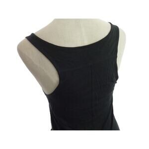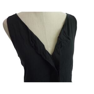 Great preowned condition. Lightweight top with pleated/ flap front seam and side pockets. Color is a very dark gray / fade black