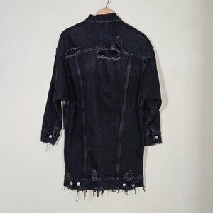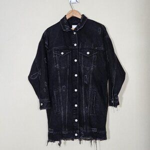 Zara Trafaluc Denim Oversize Jacket Women S Black Distressed Button Grunge Goth