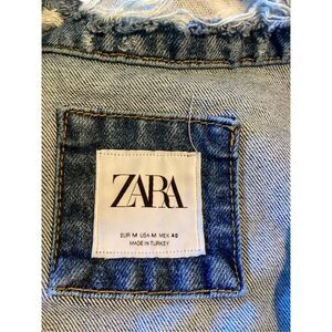Zara Trafaluc Distressed Destroyed Denim Jean Jacket Sz M