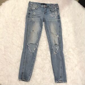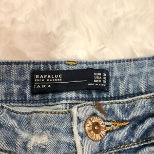 Zara Trafaluc Distressed Ripped Jeans 2. Holes on front and back. Small slit detail at hem. Preowned condition, few small marks/discoloration