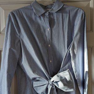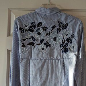 Zara Trafaluc striped blouse with flower embroidered detail on back. Blue & white striped fabric, long sleeves. The blouse has a tie- front. Size is Small, I usually wear a XS or Small. Worn once. Great condition. Purchased in Italy.