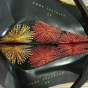 Zara Trafaluc Embroidered Sunburst Fantasy Multicolor Heels Size EU 38