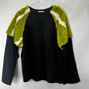 Zara Trafaluc Faux Fur Sage Green Crewneck Sweater M