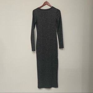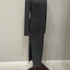 Super comfortable dress. Grey with a little shimmer/glitter. Slight open leg. Scoop neck. Long sleeve. Excellent used condition.
