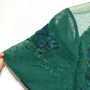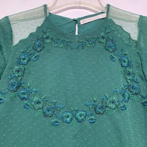 Zara Trafaluc Green Embroidered Ruffle Peplum Blouse Top Short Sleeves sz Medium