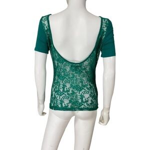 Zara Trafaluc Green Short Sleeve Lace Back Top