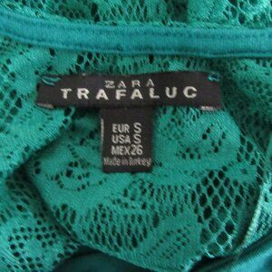 Zara Trafaluc Green Short Sleeve Lace Back Top Size S Condition:Pre-owned “Great”