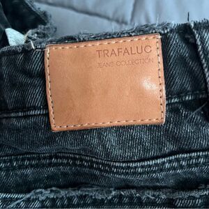 Zara Trafaluc High Waist Distressed Black Denim Shorts
