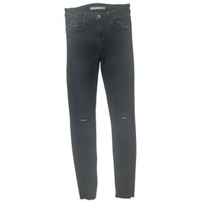 Zara Trafaluc Jeans 4 Womens Black Light Distressed Low Rise Raw Hem Skinny