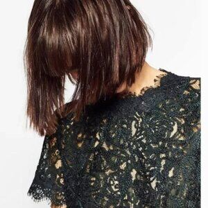 Zara Trafaluc Lace Embroidered Semi-Sheer Lace Blouse in Emerald Green SizeL NWT
