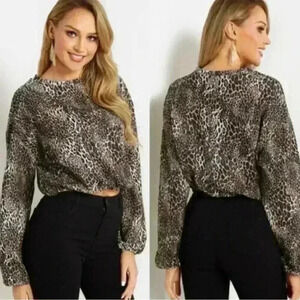Zara Trafaluc Large Women’s Long Sleeve Animal Leopard Print Elastic Cropped Hem