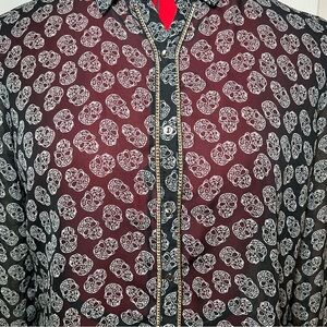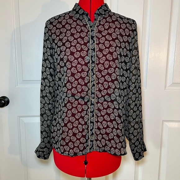 Zara Trafaluc Long Sleeve Sheer Collared Button Up Shirt - Skulls