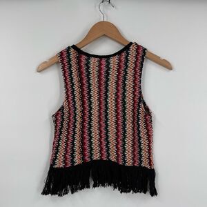 Zara Trafaluc Multicolor Striped Knit Fringe Hem Tank Top in Multi/Black | Small