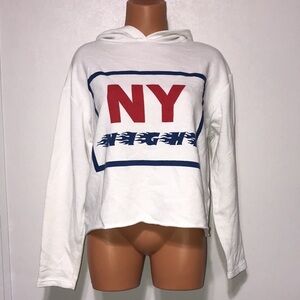 Zara Trafaluc NY Nights Cropped Hoodie White Small