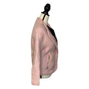 Zara Trafaluc Outerwear Tweed Pink Asymmetrical Zip Moto Jacket Blazer Sz Medium