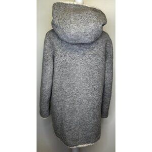 Zara Trafaluc Outerwear Women's Gray Hooded Wool Blend Coat Faux Fur Trim Size L