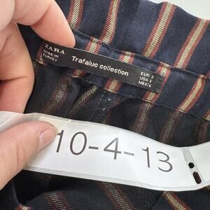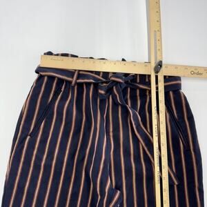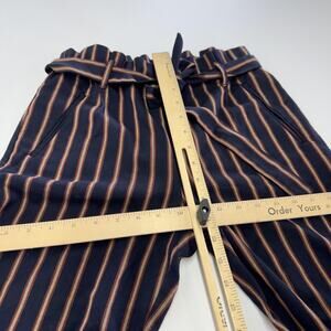 Zara Trafaluc Pants Womens Small Navy Blue Striped Paperbag Waist Tie Belt Casual