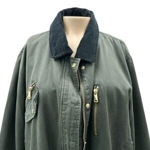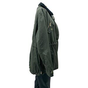 Zara Trafaluc Parka Oversized Overcoat Jacket Corduroy Zip Pocket Olive Green XL