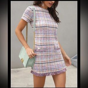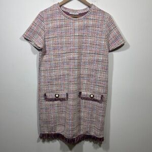 Zara Trafaluc Pink Tweed Mini Dress sz Large Blogges Fav Academia Preppy Office