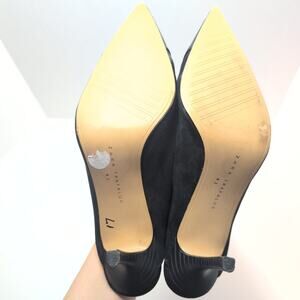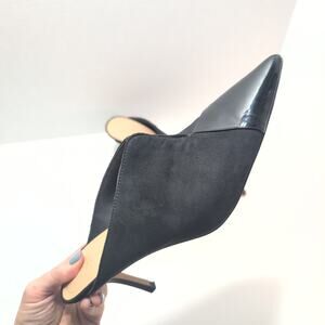 Zara Trafaluc Pointed Toe Kitten Heel Mules Women's Size 10 Patent Black Suede
