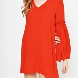 Zara Trafaluc Retro Boho Flared Bell Sleeve V-Neck Tunic Mini Dress in Auburn