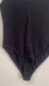Tank style bodysuit with round neck. Snap button closure at the bottom. Medium size. Round neck tank style bodysuit. Bottom snap button closure. Tonal rib trim. Pre owned