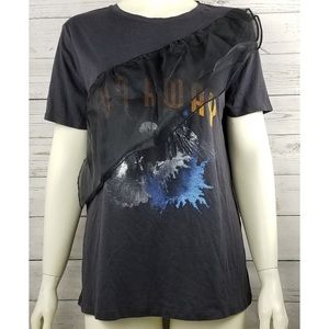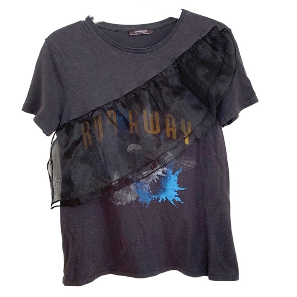 Zara Trafaluc Run Away Black Eagle Ruffle Tee