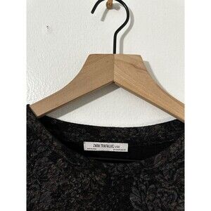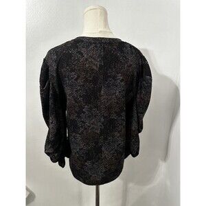 Zara Trafaluc S/S 18 Black Metallic Floral Print Puff Sleeve Top Womens Blouse