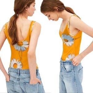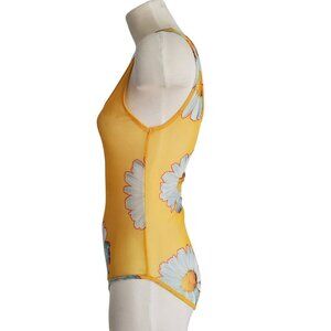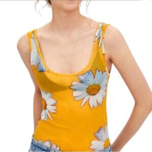 Zara Trafaluc Semi Sheer Yellow Daisy Mesh Bodysuit Whimsigoth Size S