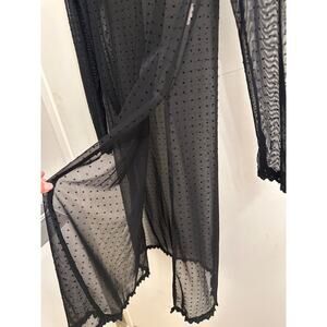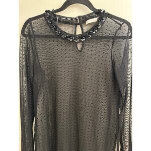 Runway-ready Zara Trafaluc Collection sheer swiss dot dress with jeweled collar embellishment (all intact, no missing pieces), sheer long sleeves, scalloped lace trim, and side slits for movement and layering.
