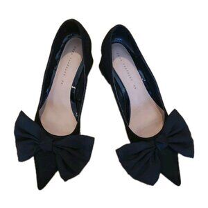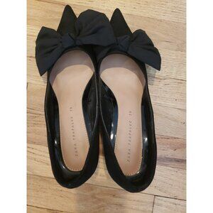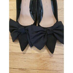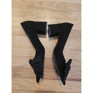 Zara Trafaluc Shoes Womens Suede Bow Block Heel Black Pointy Toe Eu 38 Us 7.5
