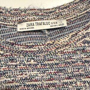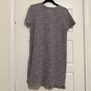 Zara Trafaluc Short Sleeve Tweed Dress Fringe Hem Size L
