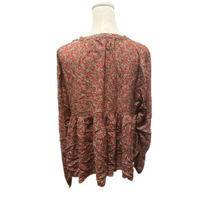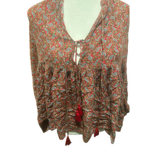 Zara Trafaluc Size Medium Red Floral Blouse Flowy Loose Tassels Shirt