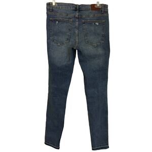 Zara Trafaluc Stretch Skinny Ripped Jeans 8 Red & White Tuxedo Stripe Raw Hem